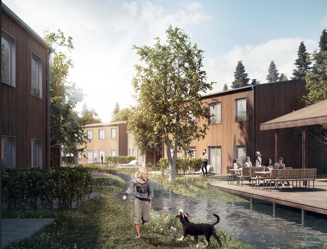 Bofællesskabet vil bestå af 28 huse og et fælleshus bygget efter small living-filosofien: dvs. en naturgrund med huse i træ, ingen støbte fundamenter og en lille bolig med funktionel og optimeret indretning.